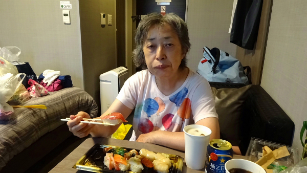 ![]() 結局お寿司を買って部屋で頂くことにしました。 |