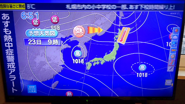 ![]() 札幌の小中学校が、下校時間を繰り上げる程の高温に見舞われています。 |