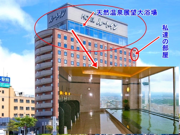 ![]() ホテル13階に展望大浴場があります。 私達の部屋は12階の角部屋で、眺めが最高でした。 |